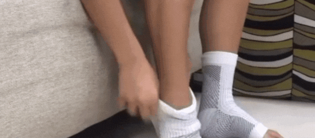 Diese Socken sind oben enger, wodurch das Blut langsam von der Unterseite der Füße nach oben gedrückt wird.